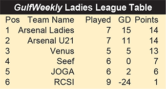 Arsenal Ladies signed off coach Liam Trigg’s final game in charge with a sizzling display and an eight-goal annihilation of RCSI in the GulfWeekly Ladies League.